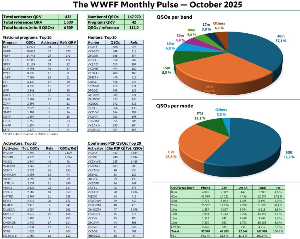 Family life has been very hectic, so the latest WWFF Monthly Pulse has been delayed a bit. But the wait has been worth it, as I can now finally offer you the October 2025 statistics for perusal.