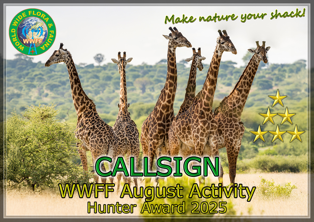 August is the WWFF activity month for 2025 – as it was in the previous years. For those participating there are awards available if you meet the requirements of hunting at least 22 references or activating with at least 220 QSOs during the month of August (see bottom of the page to check if there is an award for you).